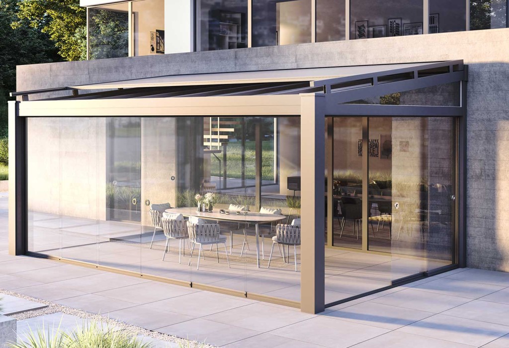 Scorrevole tutto vetro per coperture per terrazzi e giardini d’estate