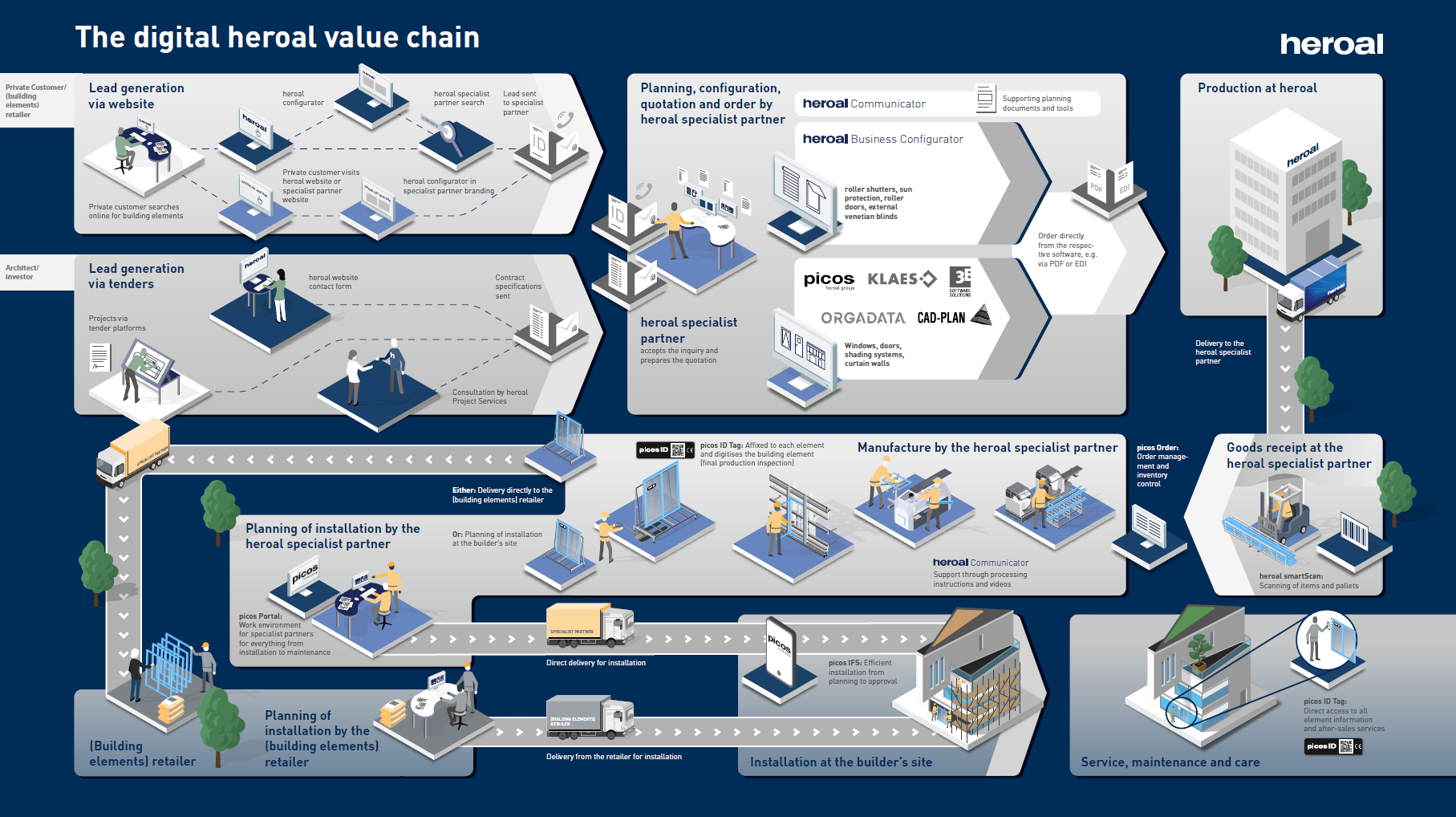 Il collegamento in rete e l’integrazione degli strumenti heroal, insieme alle offerte dei partner di cooperazione, consentono la consultazione in tempo reale di informazioni come prezzi o dimensioni.
